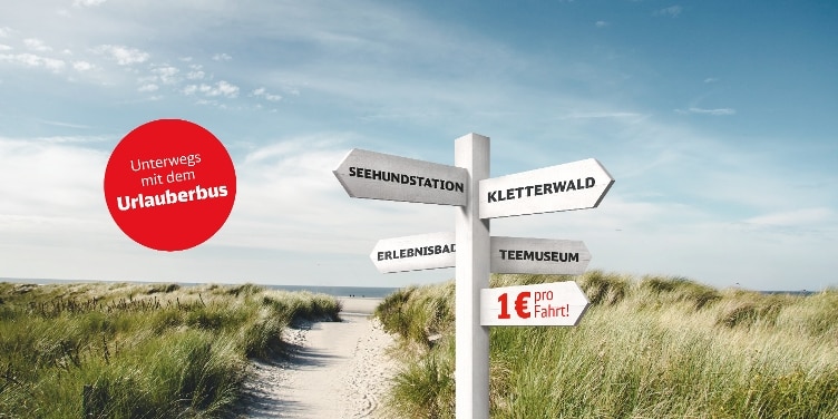Mit Ihrer Kur- oder Gästekarte sind Sie in ganz Ostfriesland besonders günstig und umweltbewusst unterwegs und erreichen viele schöne Ausflugsziele: Für nur 1 Euro pro Person und Strecke nutzen Sie den Urlauberbus in den Landkreisen Aurich, Friesland, Leer, Wittmund und Ammerland sowie in den beiden Städten Emden und Wilhelmshaven. Das Urlauberbus-Angebot gilt täglich ab 9 Uhr an 365 Tagen im Jahr. Der ermäßigte Preis gilt je Richtung und Person, gilt nicht am An- und Abreisetag. Anrufbusse, Nachtverkehre und Sonderverkehre sind ausgenommen.